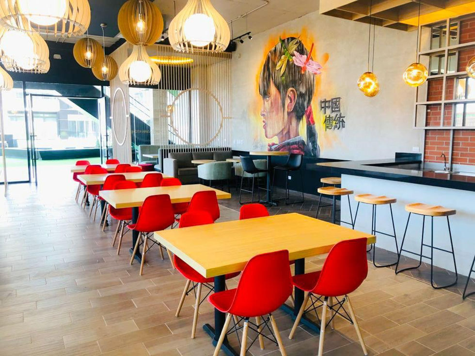 Sumérgete en una experiencia única en este restaurante, donde la modernidad se fusiona con un estilo industrial y toques naturales. Con amplios ventanales que enmarcan una vista panorámica, un bar elegante con estantes de madera y vegetación colgante, y detalles como arte mural y lámparas geométricas, cada rincón está diseñado para cautivar.